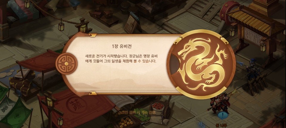 신장열전에서는 해당 무장으로 빙의해서 스토리를 진행하게 됩니다. 제1장은 유비 전입니다.
