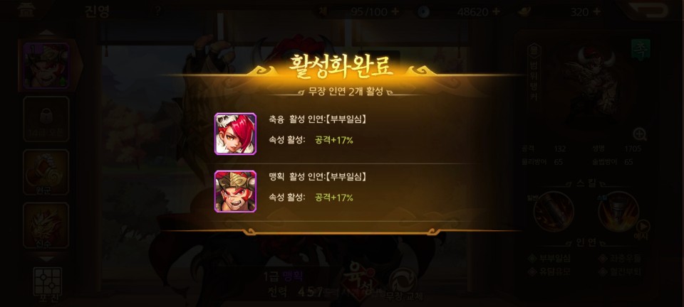 줍니다. 새로 얻은 무장 맹획은 축융과 부부이므로 인연이 활성화됩니다.
