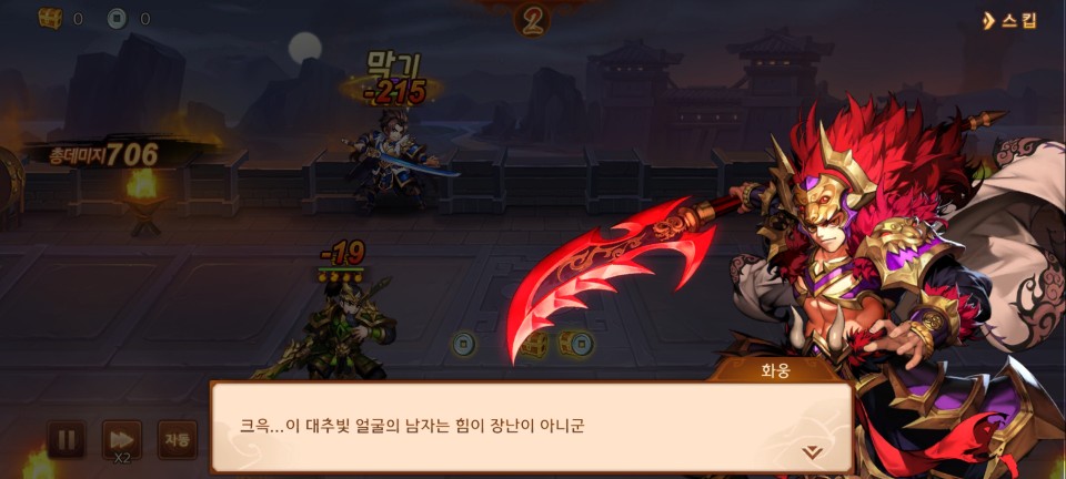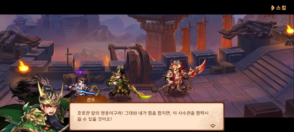 단계 돌파를 한 주인공과 함께 다시 사수관으로 돌아갑니다. 하지만 사수관 전투의 마지막 보스 화웅은 주인공이