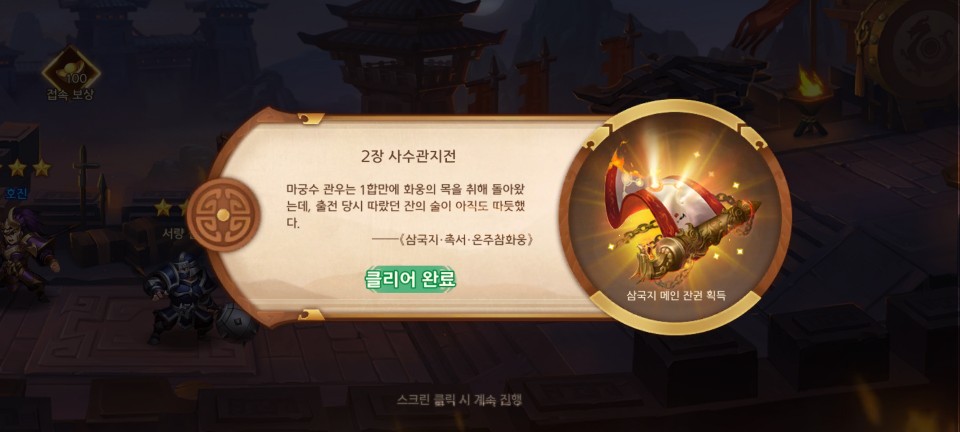 목을 베어 돌아옵니다. 이렇게 2장 사수관 전투를 클리어 합니다.