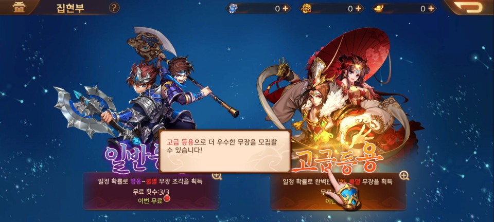 사실 이런 그랑삼국과 같은 삼국지유의 게임은 연속 뽑기에서 얼마나 좋은 무장이 많이 나오나가 관심사인 것 같습니다.