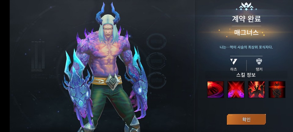우선은 무료로 용병 한 명과 계약을 합니다. 초기 멤버로 탱커인 매그너스가 주어집니다.