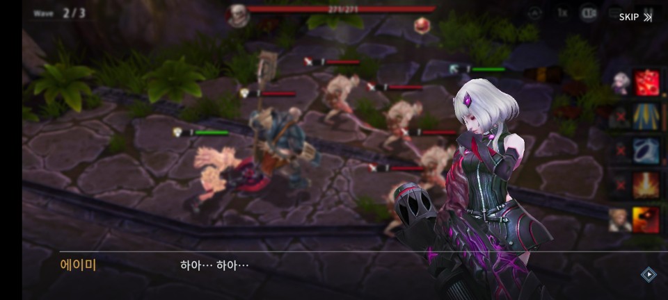 이번에는 용병단과 주인공 에이미가 만나 전투 튜토리얼이 진행됩니다.
