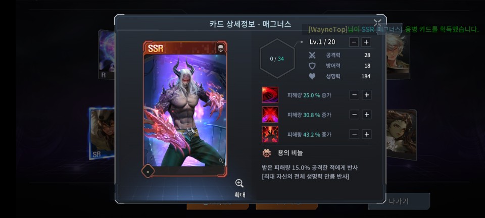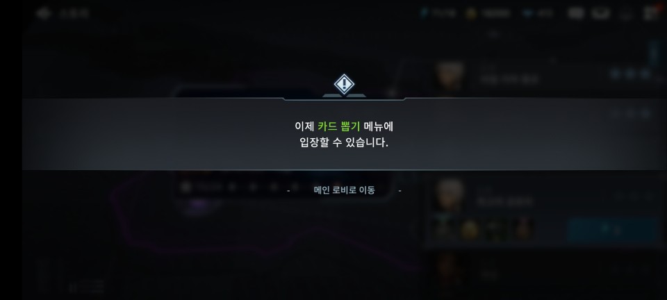 레벨을 올리다 보니 카드 뽑기 메뉴가 해제되었습니다.
