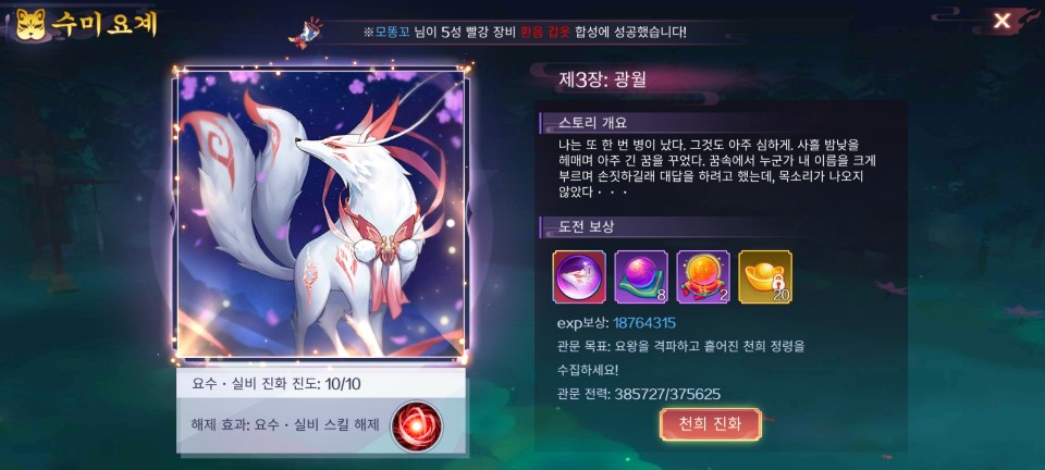 스테리테일은 이렇게 천희들을 진화시켜가는 게임입니다. 인간의 모습으로 진화시켜보기 위해 30분 플레이 리뷰가