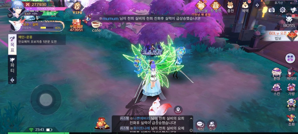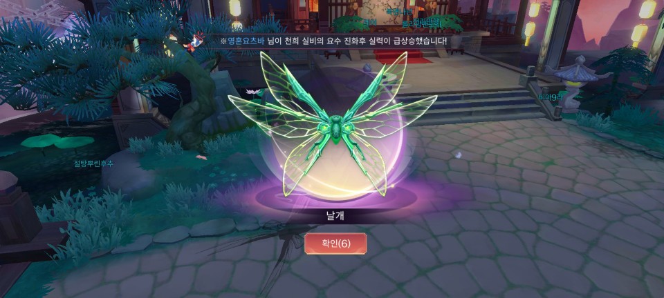 레벨 30에 도달하면 날개를 얻게 됩니다. 관문 전력보다 나의 전력이 낮을 경우 붉은색으로 나의 전력이 표시됩니다.