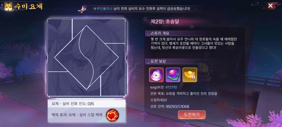 메인이벤트로 수미요계 제1장 제1관문을 통과하라는 미션이 생깁니다. 전투에 도전해 봅시다.