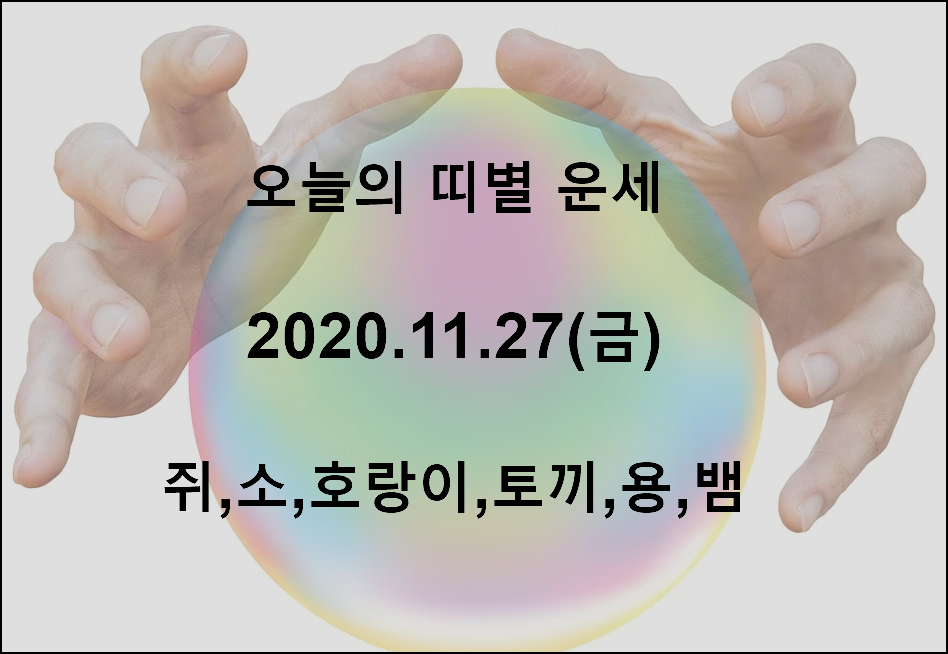 오늘의 띠별 운세 입니다. (2020.11.27 금요일)