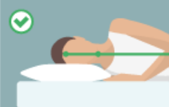 옆으로 누워서 잘 때는 어깨 높이를 감안해 경추와 척추가 일직선을 유지하도록 하는 것이 좋습니다.