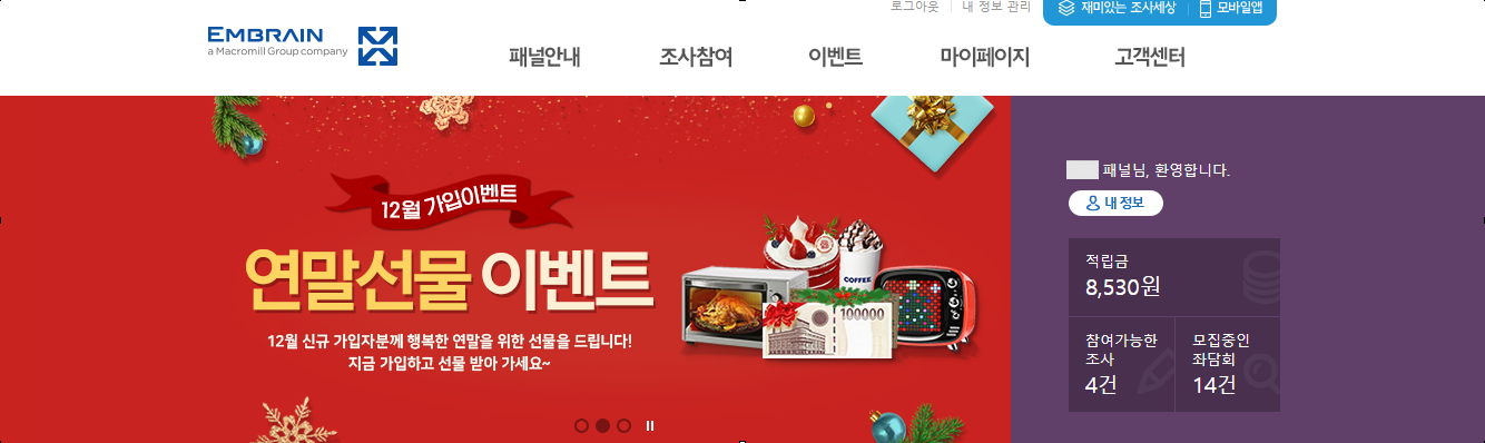 제일 먼저 소개드릴 사이트는 엠브레인 패널파워 입니다.