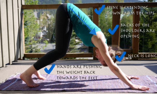 → 엉덩이를 들어서 삼각형 모양을 만들어준 후 등을 강아지가 기지개를 켜듯 쭉 내려 줍니다. ( 이때 어깨에 힘을 너무 주지 말 것 )