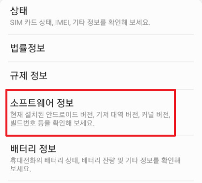 3. '휴대전화 정보' 안의 '소프트웨어 정보'로 들어갑니다.