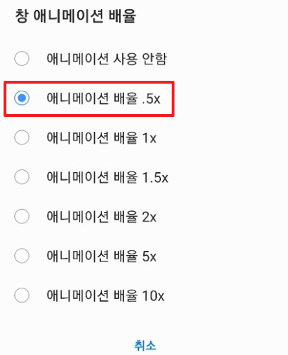 기본적으로 3개 모두 '1x'로 설정되어 있을겁니다. 3개 모두 '0.5x'로 변경해줍니다.