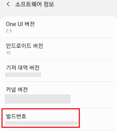 4. '소프트웨어 정보' 안의 '빌드번호'를 터치합니다.
