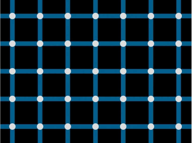 ▶ 트릭 아트 7 : 회색원들이 반짝거리는 것처럼 보이는 그림