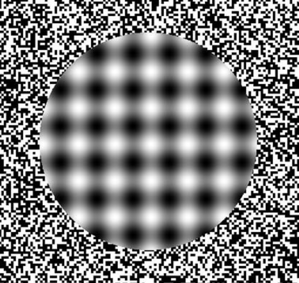 ▶ 트릭 아트 3 : 원안의 흐릿한 부분을 주목해서 보세요. 움직이는 것처럼 보입니다.