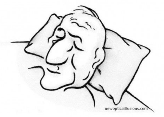 ▶ 트릭 아트 1 : 잠들어 있는 할아버지... 가 아니고 여성이 보입니까? ( 힌트 : 여성은 옆으로 누워있습니다. )