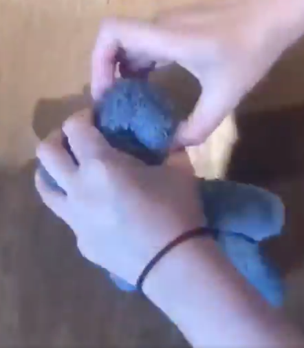 5. 고무줄을 이용해서 양 귀를 고정해줍니다. 이걸로 테디베어 완성입니다.