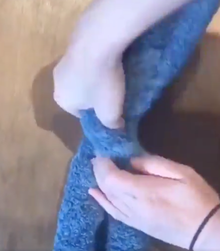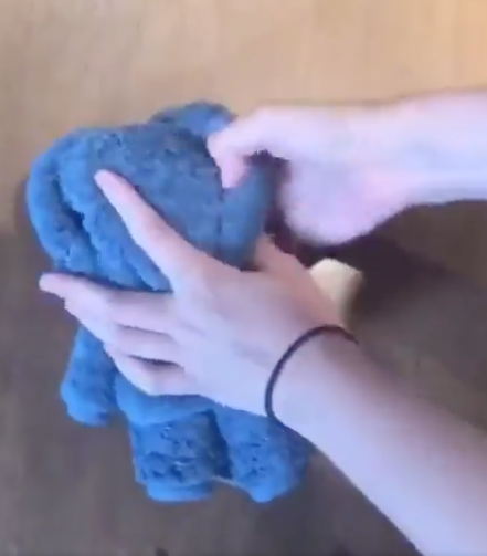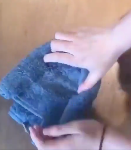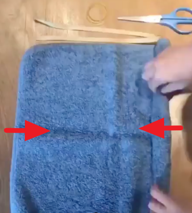 1. 수건 의 양끝을 동글동글 중심을 향해서 말아줍니다.