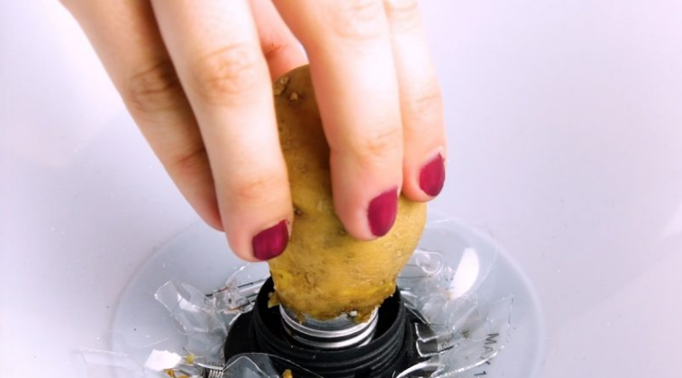 전구가 깨질 일은 그렇게 많지 않지만, 만약 전구가 깨져서 소켓을 빼야 할 일이 생긴다면, 감자를 이용해서 소켓을 뺄 수 있습니다. 주변에 깨진 유리도 있어서 그냥 손으로 뺄 경우 다칠 위험이 있으니 위와 같이 감자를 꼽고 돌려주면 됩니다.