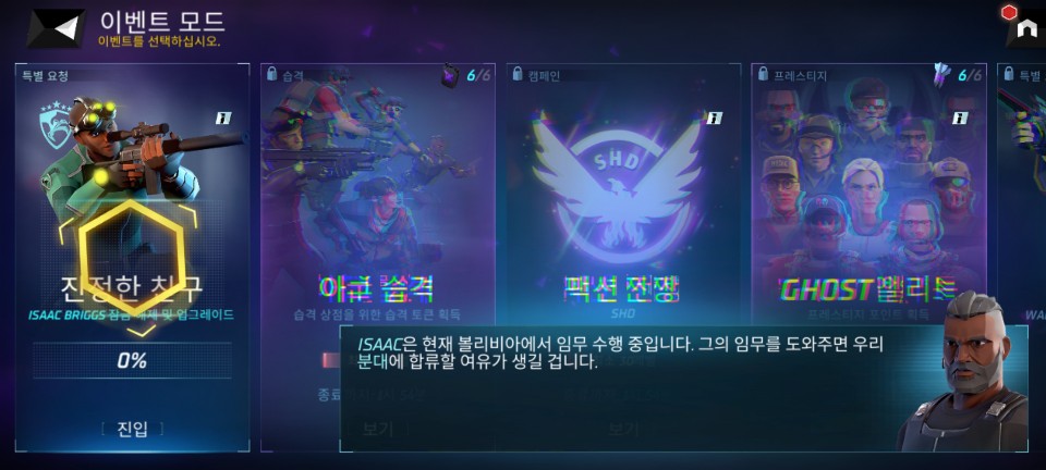 지휘관 레벨이 오르다 보면 이벤트 게임 모드 잠금이 해제됩니다. 캠페인이 메인 스토리라고 하면 이벤트 모드는