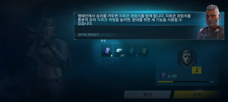 캠페인에서 승리를 거두면 지휘관 경험치를 얻게 됩니다. 지휘관 레벨이 올라야 활성화되는 메뉴도 있고, 병사들의
