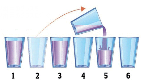 9. 컵 한잔만 움직여서 물이 들어 있는 컵과, 빈 컵이 번갈아가면 배치되도록 해보세요.