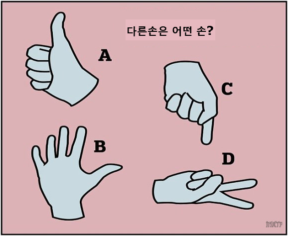 11. 다음 중 다른 손이 하나 있습니다. 어떤 손일까요?
