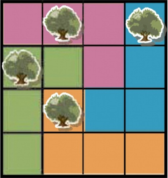 5. 조르지오 씨가 죽으면서 4명의 아들에게 한 그루씩의 나무와 같은 모양의 땅을 상속한다는 유언을 남겼습니다. 어떻게 분할하면 될까요?