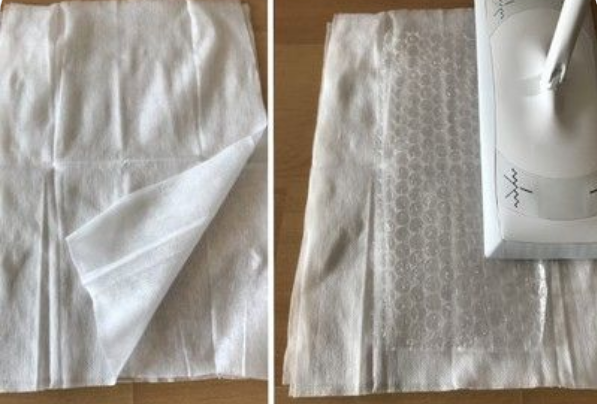 시트를 2~3장 겹쳐서, 밀대 걸레 의 헤드와 시트의 사이에 헤드 사이즈에 맞게 자른 에어캡 을 껴주는것 만으로 끝. 에어캡 의 기포 부분을 바닥으로 향하게 해서 끼어주는 것이 요령입니다.