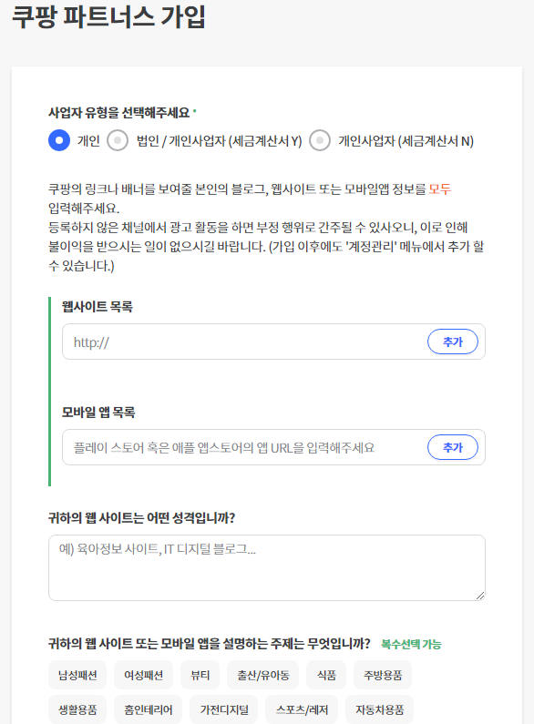▶ 쿠팡 파트너스 회원 가입을 해봅시다.