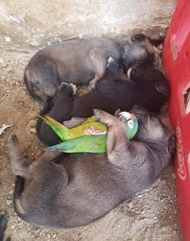 날개를 다친 새를 트럭 밑에서 4일간 지켜봐 준 강아지. 날 수 있게 될 때까지 한시도 떨어지지 않고 보살폈다고 합니다. 강아지 주인이 먹이와 물을 공급해주면서 버텼다고 합니다.