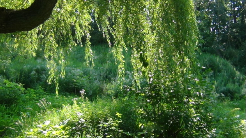 정원의 끝까지 걸어가니 자신이 물에 빠져있다는 것을 알게 됩니다.
