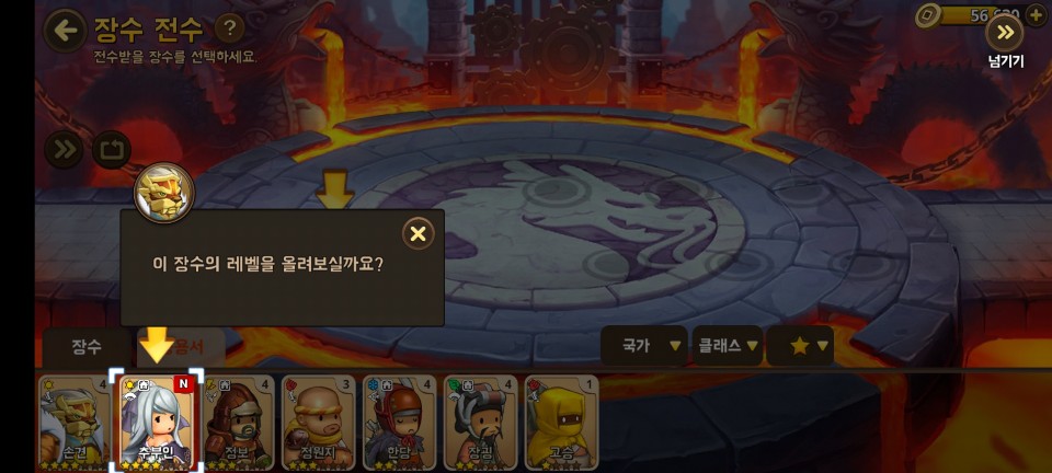 장수 전수는 쓰지 않는 장수 카드로 레벨을 올려주는 것입니다.
