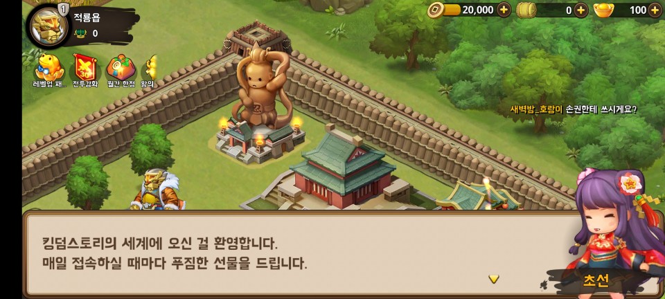 앞으로 더 많은 메뉴들이 해제되겠지만 우선 킹덤스토리의 30분 플레이는 여기까지 하도록 하겠습니다.
