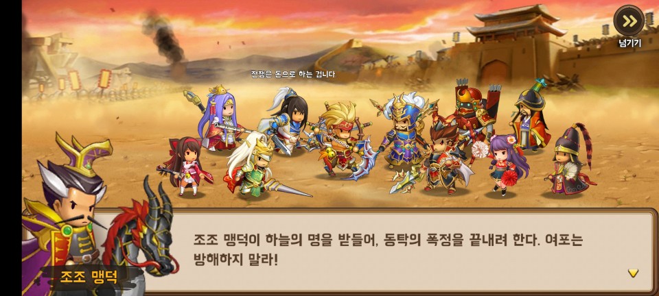 킹덤스토리는 다른 삼국지 게임들에 비해 디자인도 그렇고 약간 가벼운 느낌의 삼국지 게임입니다.