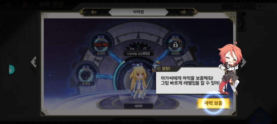 획득한 인물은 파티에 포함시켜주고 레벨업, 스킬업, 장비 강화 등으로 전투력을 높여주도록 합시다.