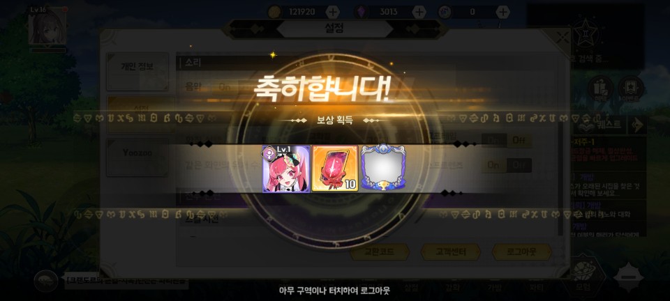 참고로 아래 오른쪽 화면은 사전 등록 보상입니다. 우와~ 할 정도의 보상은 아닙니다.