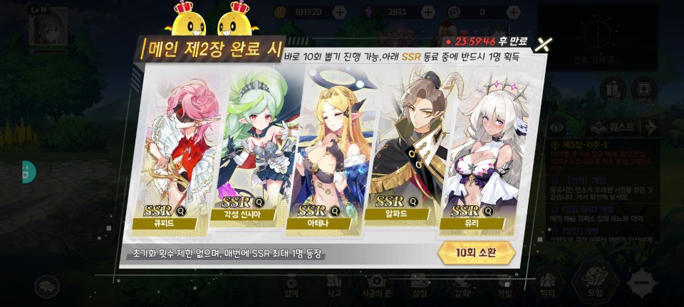 어쨌든 메인 2장을 완료하고 나니 자동으로 아래 화면으로 이동하여 10회 소환을 하게 되었습니다.
