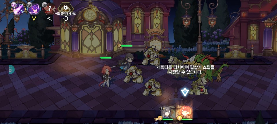 전투에서는 캐릭터 클릭으로 스킬 시전이 되지만 뒤로 가면 스킬도 자동 시전이 가능해집니다.