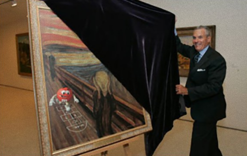 2006년 8월, 초콜릿 메이커인 마스 사는 자사의 새로운 다크 초콜릿 M&M를 팔기 위한 마케팅 전략을 겸해서, 위에서 언급한 2004년에 도난당한 그림의 탈환에 한몫을 하게 되었습니다. '절규'의 그림 안에 M&M가 비석 치기를 하는 광고를 제작해서, 달콤한 보수를 제안한 것입니다.