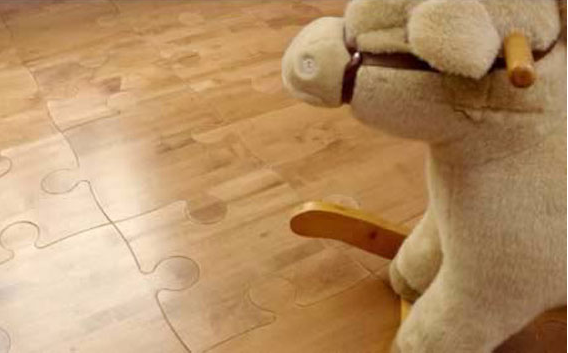 어린이방용으로 만들어진 직소퍼즐의 부품을 조합한 것 같은 바닥. 이 바닥은 퍼즐과 같이 부품을 떼어낼 수 있게 되어있어서, 어린이가 가지고 놀 수도 있습니다. 원래대로 돌려놓는 것이 힘들어보기는 해도 말이죠.