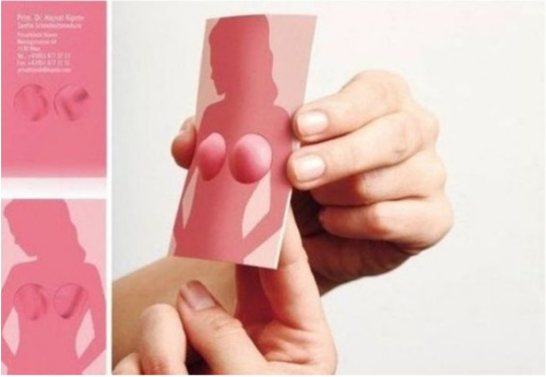 미용 정형외과의 명함. 가슴 수술을 강조하고 있네요.