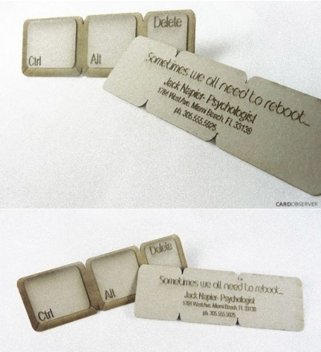 심리학자의 명함입니다. 컴퓨터에서 Ctrl+Alt+Delete 버튼으로 전부 지워버리는 것 처럼, 마음속의 고민을 모두 날려주겠다는 의미입니다.