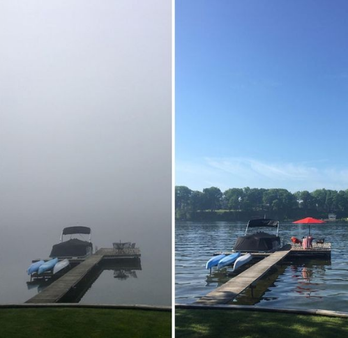 미시간의 한 호수에서. 오전 9시 vs 오전 11시