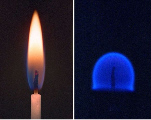 촛불 타는 모양. 지상 vs 국제 우주 정거장