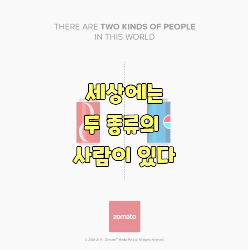 세계의 레스토랑을 검색할 수 있는 미디어 사이트 'ZOMATO'가 만든, '세상에는 두 종류의 인간이 있다'라는 제목의 라이프 스타일 등을 비교 한 재미있는 그림들을 소개합니다.
