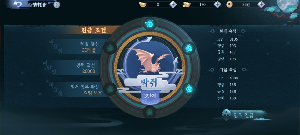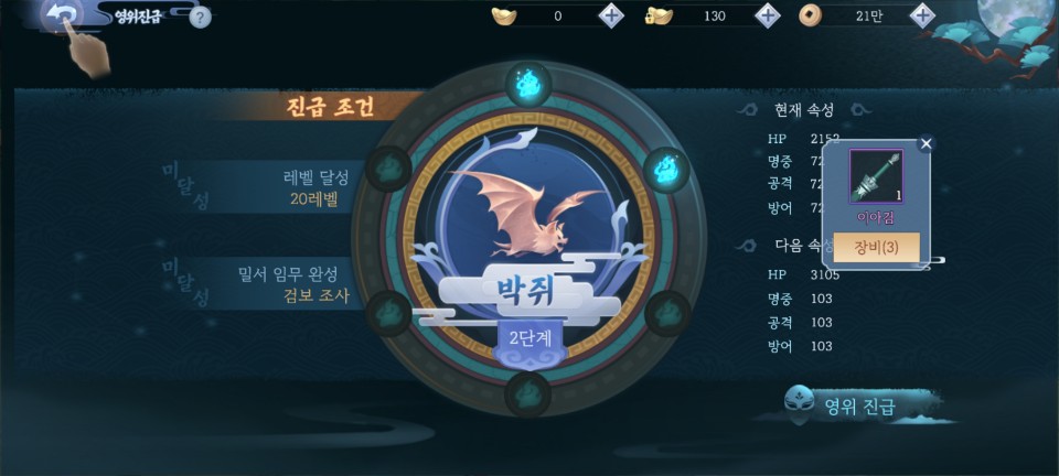 주인공은 처음에는 영위 1단계로 시작을 합니다. 진급 조건을 달성하여 영위 단계도 올리도록 합니다.