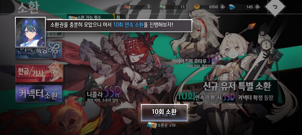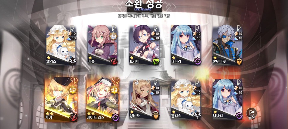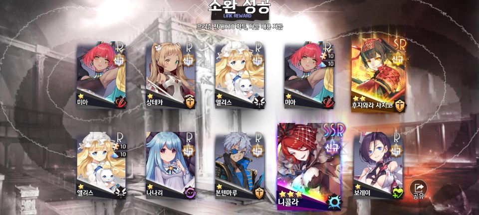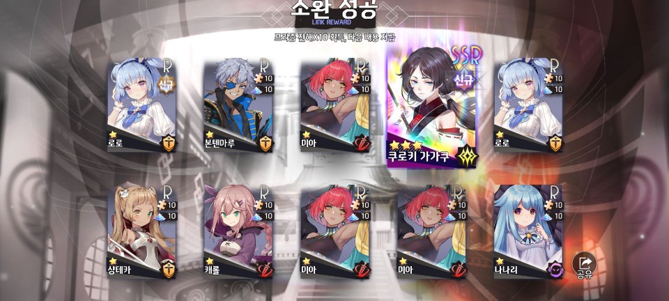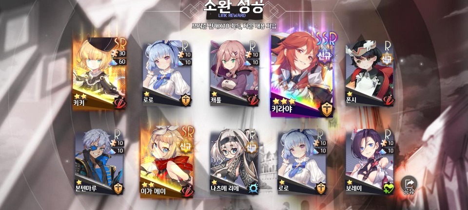 또 한 번 SSR급 미소녀를 목표로 10회 소환을 해봐야겠습니다.