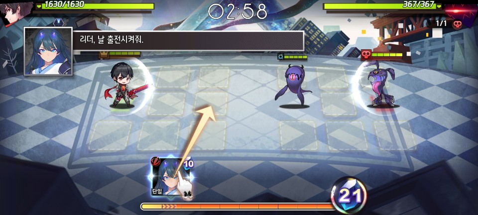 전투 방식은 리더는 고정 출전이고, 나머지 멤버를 상황에 맞게 출전시키는 방식입니다.